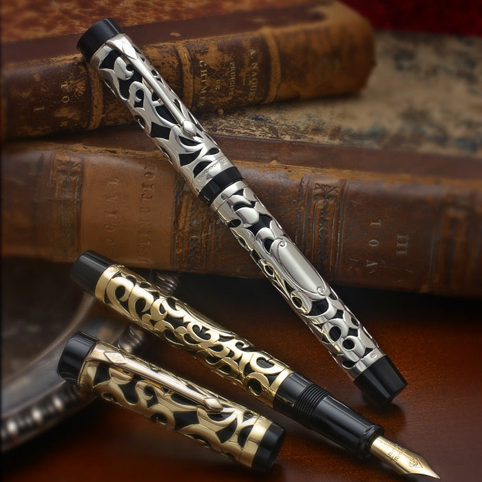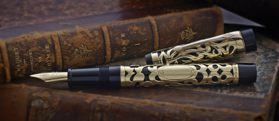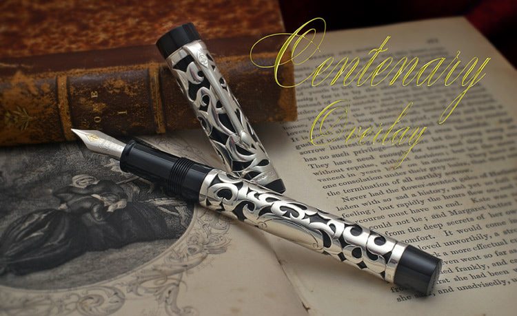 Conway Stewart's latest Limited Edition is quite a departure for them. They have produced pens in solid gold prior to this, but this is the first time they have ventured into the production of a filigree overlay. The results would seem to prove that the attempt has been successful! One of several special pens being launched by Conway Stewart to celebrate the company's 100 year anniversary, the Centenary Overlay is a very striking pen, both in looks and "in the hand" presence.