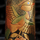 Mr. Koichiro Okazaki's work name is Kogaku-san. His work is painted freehand without any outline of design or silk screen process. While 90% of currently produced Maki-e artwork utilizes man-made Urushi lacquer, Kogaku san uses only 100% natural Urushi lacquer, collected by hand from Urushi trees.