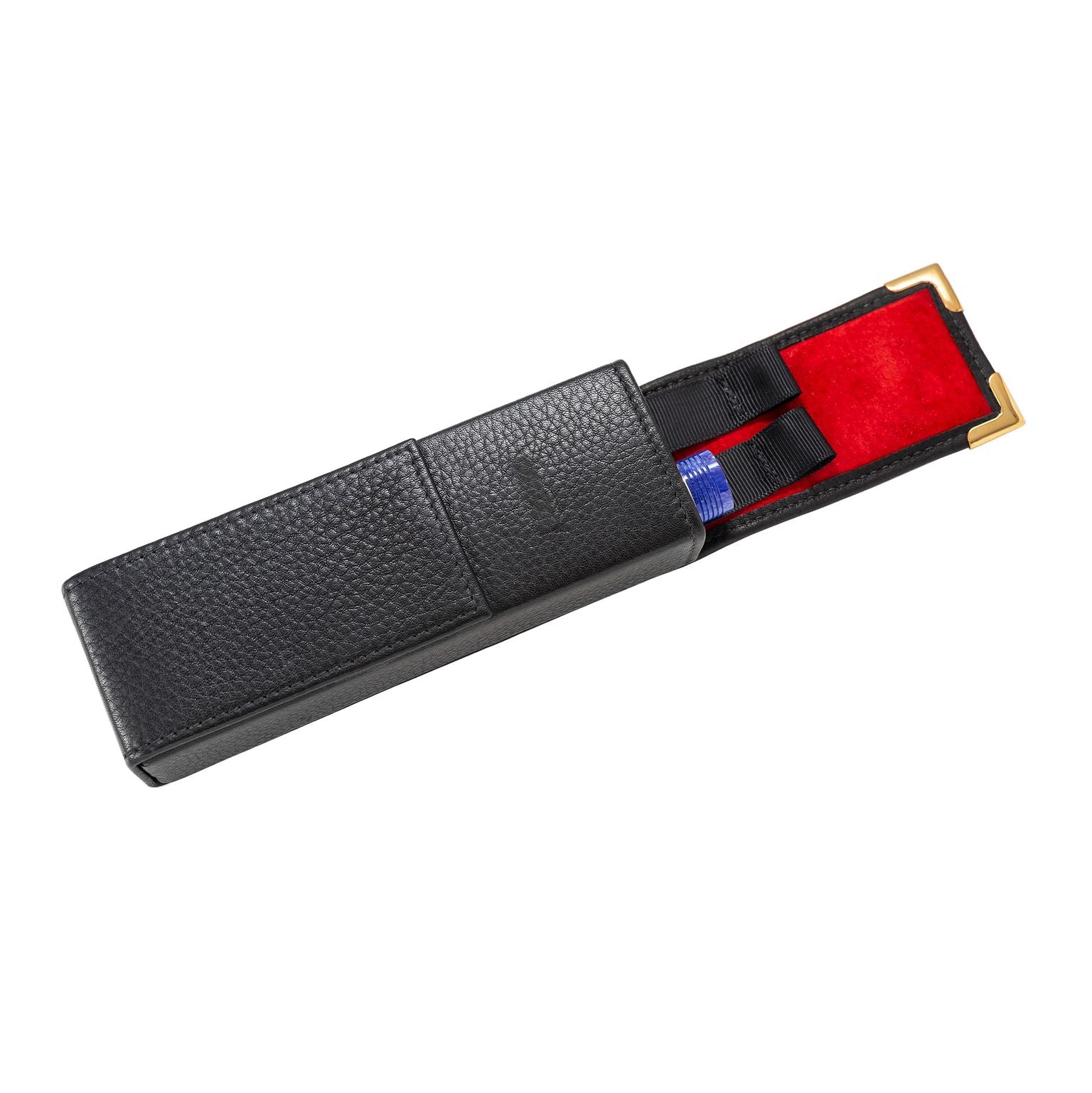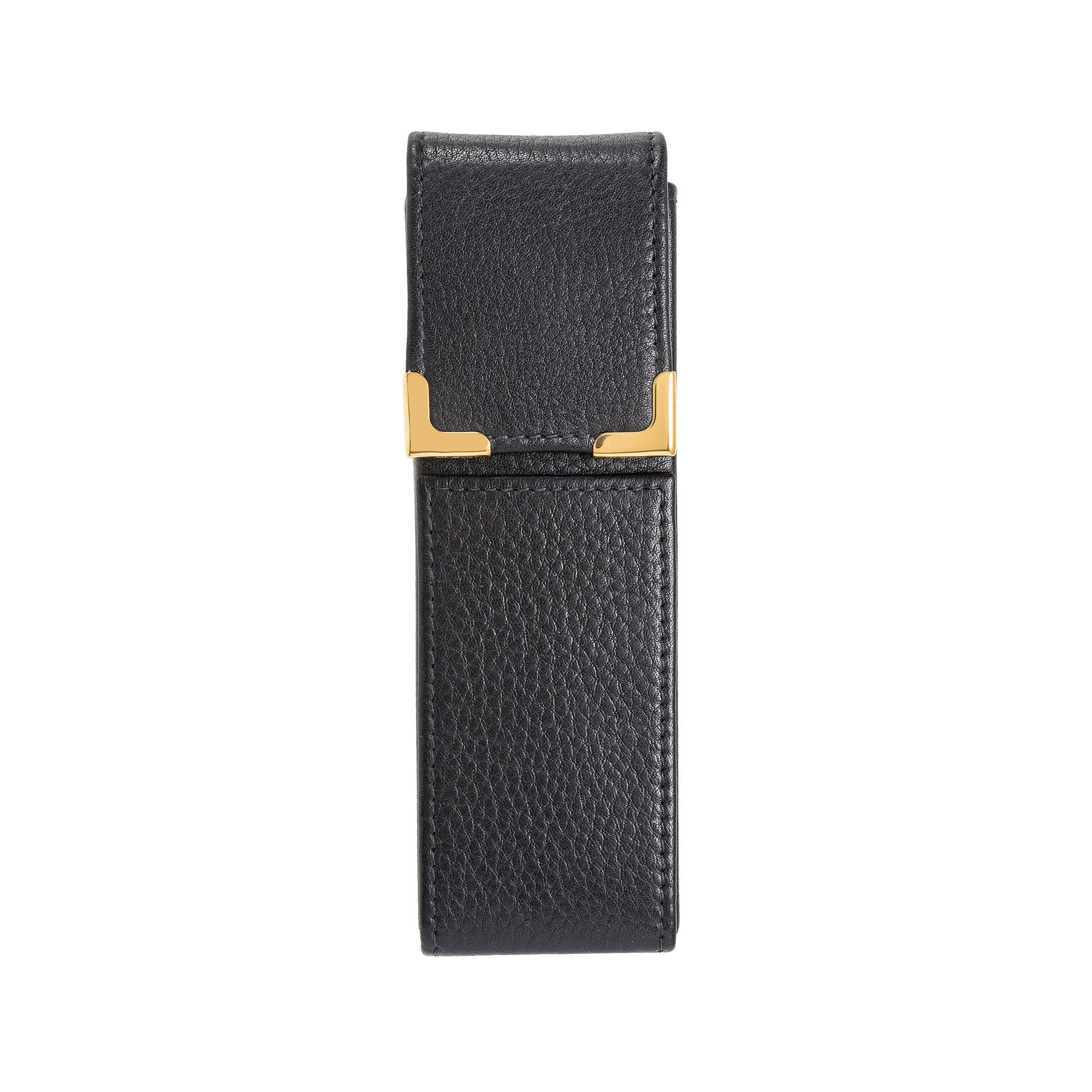 Estuche de cuero para 2 bolígrafos con accesorios chapados en oro de 23 quilates