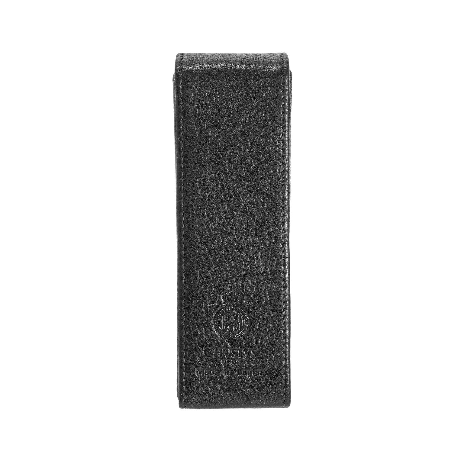 Este lujoso estuche para bolígrafos de cuero está diseñado y fabricado en Inglaterra por uno de los principales fabricantes de artículos de cuero de lujo del mundo. Cuenta con una pestaña inteligente que puede contener tanto los bolígrafos más grandes como los más pequeños y sacarlos con facilidad. La caja está asegurada con un clip magnético y cuenta con esquinas estampadas en plata esterlina chapada en oro de 23 quilates, lo que se suma a su opulencia. El exterior de piel de becerro suave negra y el interior de ante rojo completan el aspecto lujoso. Grabado con los logotipos "Made in England" y Conway Stewart, este estuche para bolígrafos es el epítome del lujo y la funcionalidad. Tenga en cuenta que el bolígrafo Churchill es demasiado largo para caber en su interior.