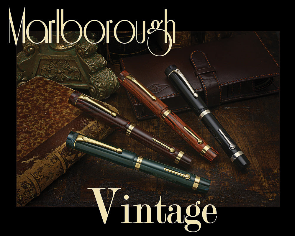El Marlborough Vintage está limitado a solo 300 piezas de cada acabado de ebonita y, por primera vez, en una selección de tres mecanismos de llenado: llenado de palanca, cuentagotas y el conveniente cartucho convertidor.