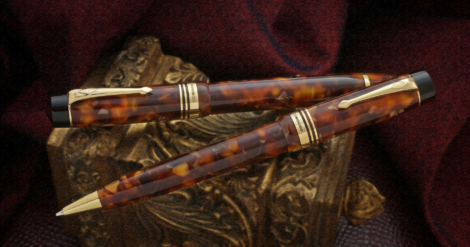 コンウェイ・スチュワートの 2013 年モンタギューとキャピュレット シリーズは、シェイクスピアの永遠の古典『ロミオとジュリエット』の主要登場人物を称え、優雅でエレガントなスリムなデザインを手に命を吹き込みます。 オリジナルのスターリングシルバーのバベッジ モデルをベースにしたこれらのペンは、キャップ、バレル、グリップ部分にハンドキャストされたアクリル樹脂の構造を特徴としています。キャピュレットには、カーディナル レッド、カッパー ブロンズ、エバーグリーン、ラベンダー、シー グリーンの 5 つの新しい鮮やかな仕上げがあり、モンタギューは、優雅なギョーシェ スタイルの彫刻が施された輝くクラシック ブラックで作られています。 これらのペンは、コンウェイ・スチュワート コレクションを日常の実用性の新たなレベルに引き上げ続けており、そのスリムなラインと完璧にバランスのとれた軽さにより、今日の忙しいライフスタイルに見事にフィットします。 システム手帳やブリーフケースとして実用的です。モンタギューとキャピュレットは、あらゆるエグゼクティブや高級筆記具の愛好家にとって完璧なアクセサリーです。 手になじみやすいデザインでありながら、機能性とエレガントさを兼ね備えた新シリーズです。万年筆バージョンには、エクストラ ファインからエクストラ ブロード、イタリック ファイン、イタリック ミディアム、イタリック ブロードまで 8 つのペン先グレードからお選びいただける大型の 18 カラット ソリッド ゴールド ペン先が取り付けられており、信頼性が高く使いやすいカートリッジ コンバーター...