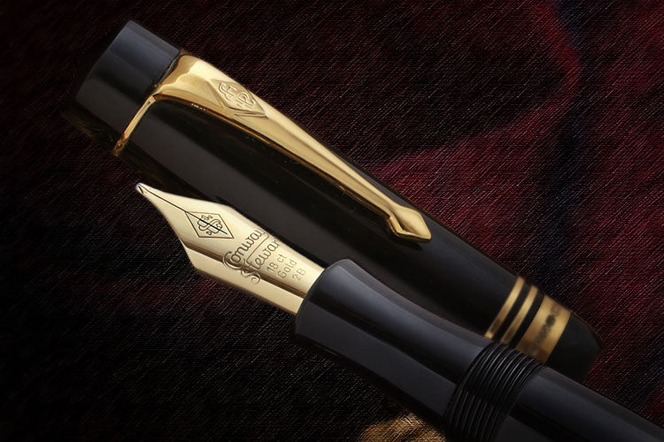 コンウェイ・スチュワート マールボロ ヴィンテージ リミテッド エディションは、ヴィンテージ モデルのクラシックなスタイルにインスピレーションを受け、現在の製造技術で作成された傑出した新しいデザインで、コンウェイ スチュワート ファミリーに時代を超越した新たな製品が加わりました。 マールボロはウィンストン・チャーチル卿の姓にちなんで名付けられ、誇り高い英国の伝統と結びついた視覚的に印象的な筆記具として、当社の主力モデルであるチャーチルの伝統を継承しています。 キャップとバレルの形状が直線的なデザインで、ビンテージ スタイルのワッシャー クリップを備えたマールボロは、1920 年代の最高級のコンウェイ スチュワート ペンを思い出させます。 ブリテンズ ベストの初期の例に忠実に、現在のマールボロ ヴィンテージ モデルは、1930 年代初頭まで万年筆メーカーに選ばれていた素材である本物のエボナイトを限定して使用しています。 キャップトップの彫刻のアクセント、18カラットの純金またはスターリングシルバーで作られた幅広のバレルバンド、そして伝統的なレバーフィルシステム、スポイトフィル、またはカートリッジコンバーターの選択を備えたマールボロヴィンテージは、まるで本物の世界から抜け出したかのように見えます。 1920年代。 マールボロ ヴィンテージに選ばれた素材は最高品質のエボナイトで、ブラック、ブルー リップル、ローズ リップル、木目調仕上げからお選びいただけます。それぞれの作品は、色、パターン、一貫性が注意深く検査されます。デボンの職人によって個人的に選ばれたエボナイト素材はペンの部品に加工され、手作業で組み立てられ、手作業で研磨され、慎重に手作業で取り付けられ、すべてのマールボロ ヴィンテージ万年筆が最高の品質基準に保たれるようにしています。 バレルには幅広のしっかりした貴金属バンドがアクセントになっており、バンドのないキャップの上部には、コンウェイ・スチュワートのごく初期のペンのデザインを彷彿とさせる彫刻デザインが施されています。 レバー充填バージョンには新しく改良された内部機構を採用し、インク嚢をより簡単かつ完全に充填できるようにしました。レバー自体はマールボロのトリムに合わせて豪華にメッキされ、CS ロゴが飾られています。...