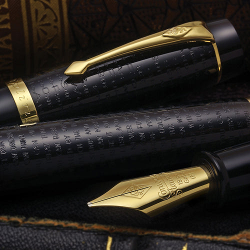 このペンは、キャップと軸に厳密にフォーマットされたパターンを形成する彫刻文字の革新的な使用によって大胆な主張を行っており、所有者は綿密に検査した場合にのみ、キプリングの 2 つの偉大な作品を読むことができます。